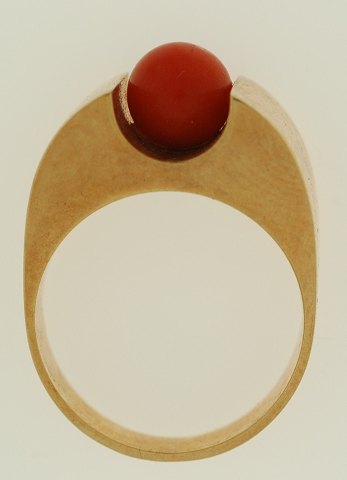 Ring af guld 14 kt. prydet med orange koral - stemplet "Handmade Sandberg Denmark" Str. 53,5 vægt: 6,9 gr.