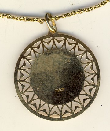 Vedhæng af guld 18 kt. samt collier i guld 18 kt. L. 58 cm vægt: 22,4 gr.