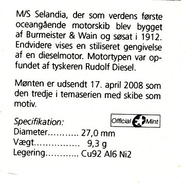 M/S Selandia 20 kr. proof - kun fremstillet i 1500 eksemplarer. Æske medfølger.