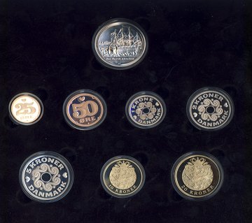 Møntsæt 2006 proof; 20 kr, 10 kr, 5 kr, 2 kr, 1 kr, 50 øre, 25 øre samt medalje i sterling SØLV.