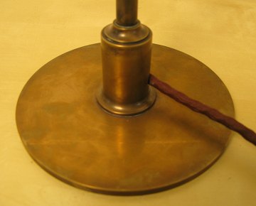PH Poul Henningsen (1894-1967) 3/2 bordlampe i messing, skærme af rav farvet glas, monteret med brun stofledning, ingen afbryder. H. 45 cm. Diam. 29 cm