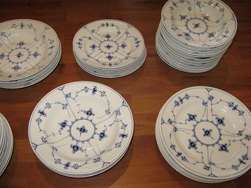 Musselmalede tallerkner af porcelæn - 36 stk. Kongeligt Porcelæn.