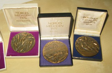 Norges Medaljer 1980-1975 (6 stk.) samt Svalbard Medaljen (1925-1975) 1 stk. Varierende vægt og diameter, cirka diam. 70 mm og vægt 265 gr. pr. stk. Alle udført i bronze.