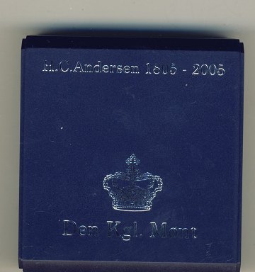 10 kr. SØLV - præget i anledningen af 200 året for H.C. Andersens fødsel. Vægt: 31,1 gr. Med tilhørende æske og papir.