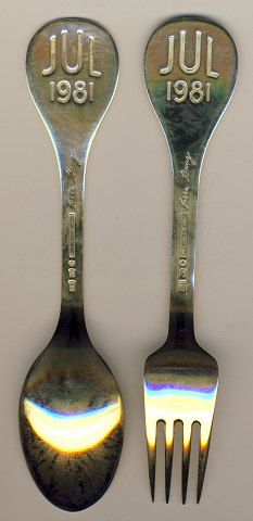 Juleske og gaffel 1981 - udført i forgyldt sterling sølv. A. Michelsen
