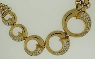 Collier af guld 14 kt. prydet med brillanter på samlet ca. 2,40 ct. L. 41 cm vægt: 54,5 gr.