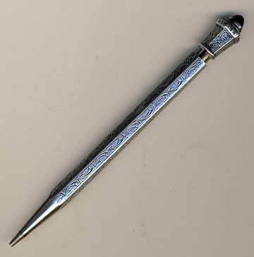 Stiftblyant af sølv prydet med blåt glas i toppen. L. 13 cm