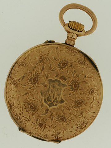 Lommeur af guld 14 kt. med hvid skive. Diam. 29 mm vægt: 20 gr.