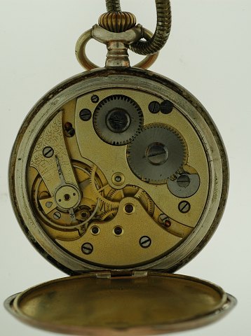 Cortebert lommeur i kasse af sølv. Urkæde medfølger, denne dog ikke af sølv. Diam. 48 mm