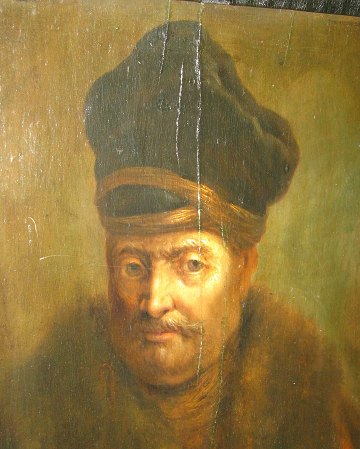 Træpladen er revnet to steder. Malerilampe medfølger.