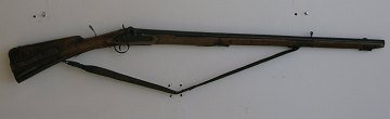 Svensk jagtgevær med forlader. L. 124 cm