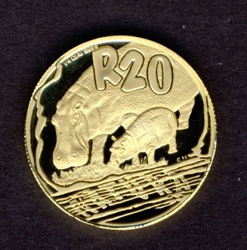 Sydafrika, 20 rand 2005, 1/4 ounce finguld - æske og certifikat medfølger.