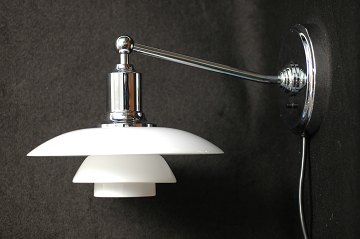 PH Poul Henningsen (1894-1967) 2/1 væglampe, højglansforkromet, skærme af mundblæst hvidt opalt glas, monteret med plastledning, H. 16,5 cm Diam. 20 cm
