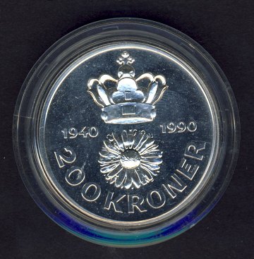 200 kr SØLV, erindring om Dronningens 50 års fødselsdag 1990