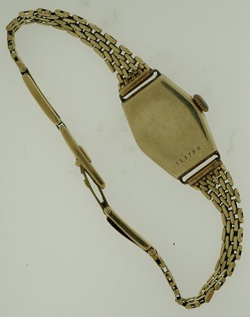 Revue damearmbåndsur i 14 kt. guld, plexiglas, manuelt optræk, diam. 16 mm vægt: 15 gr.