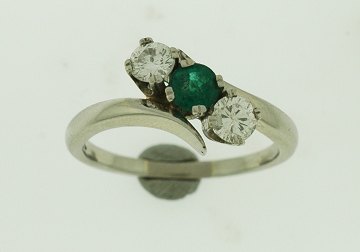 Ring af hvidguld 18 kt. prydet med to diamanter på samlet ca. 1 ct. samt smaragd på ca. 0,50 ct. str. 64,5 vægt: 7 gr.