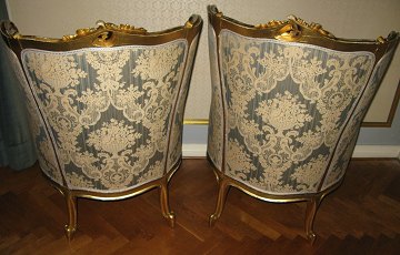 Bergerer af forgyldt udskåret træ, Louis XVI form, Sædehøjde: 45 cm bredde: 63 cm ryghøjde 100 cm