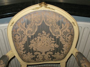 Stol med armlæn. Gustaviansk form. H.(ryg) 96 cm H. (sæde) 43 cm B. 60 cm