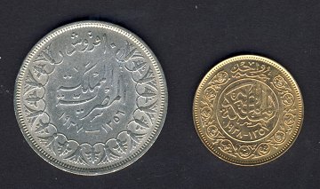 Egypten, 100 piastre 1938 GULD 8,5 gr. samt 10 piastre 1937-1939 SØLV 14 gr., i flot æske.
