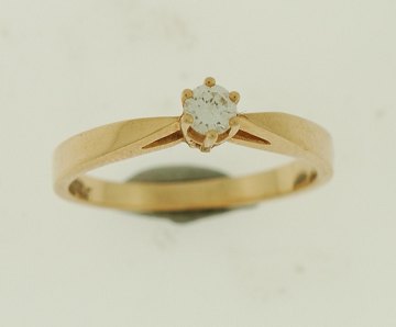 Solitaire ring af 14 kt. guld prydet med brillant på 0,15 ct. str. 54 vægt: 2,5 gr.