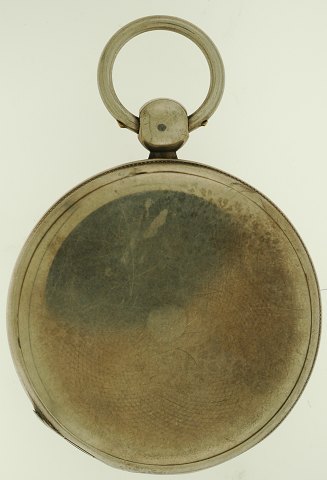 Lommeur i kasse af sølv, sølv skive m. romertal. diam. 48 mm. urkæde medfølger. Optræksnøgle mangler.