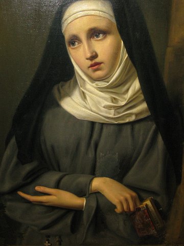 Heinrich Löwenstein (1806-1841), olie på lærred, portræt af Den hellige Crescentia f. Kaufbeuren, d.1744. Sign. H. Löwenstein 1837. Mål 96x77 cm
