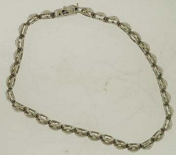 Tennisarmbånd i 14 kt. guld prydet med 32 zirkoner. L. 18,5 cm vægt: 12,5 gr.