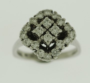 Ring af 14 kt. hvidguld prydet med talrige 19 brillanter på samlet ca. 0,84 ct. Wesselton/VS. str. 49,5 vægt: 5 gr.