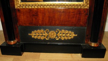 Senempire spejl i mahogni, delvist sort- og guldmalet. H. 110 cm B. 52 cm