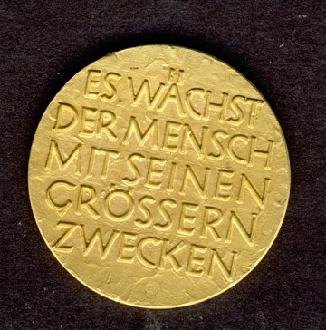 Guldmedalje, præget i anledningen af 200 året for Frederich Schillers fødsel 1759. Lødighed .986 vægt: 14 gr.