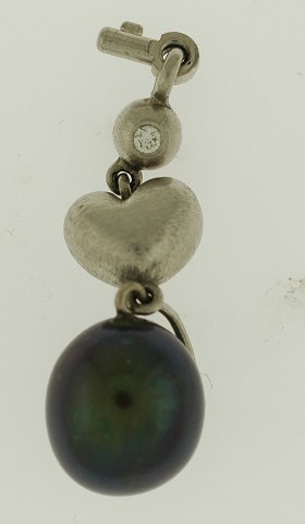 Ole Lynggaard nøgle-vedhæng i 14 kt. hvidguld med brillant på ca. 0,02 ct. W/VS samt south sea perle. L. 33 mm vægt: 4,4 gr.