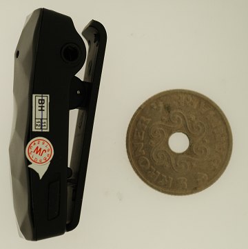 Verdens mindste digitale videokamera, optager lyd og billeder og kan bruges som mp3. 58x23x20 mm
