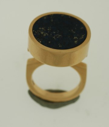Ring af guld 14 kt. prydet med blå sten. str. 53 vægt: 19,8 gr.