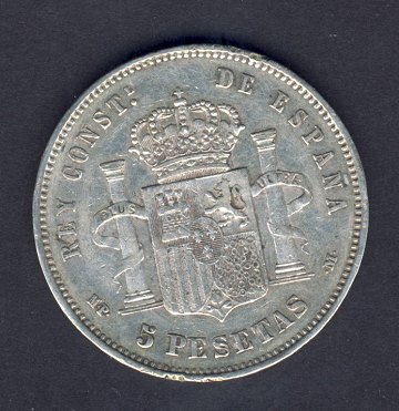 Spanien, 5 pesetas 1888 (88)