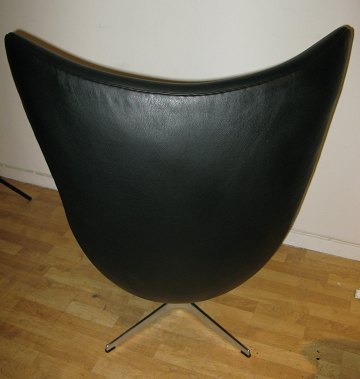 Arne Jacobsen (1902-1971), Ægget i sort læder, ægget er placeret på en poleret aluminiumstjernefod med drejefunktion, skallen formet af fiberglasforstærket kunststof med skumpolstring. H. 105 cm B. 79 cm