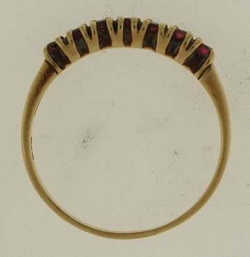 Ring af guld 14 kt. prydet med 7 rubiner på samlet ca. 0,50 ct. str. 60 vægt: 2,5 gr.