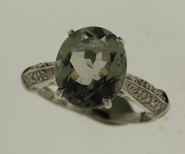 Ring af hvidguld 10 kt. prydet med aquamarine på ca. 5 ct. flankeret af mindre diamanter på samlet ca. 0.10 ct. str. 54 vægt: 3,3 gr.