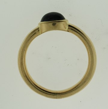 Ring af guld 14 kt. prydet med oval safir. str. 57 vægt: 7,5 gr.
