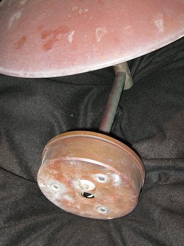 Lampen fremstår med patina, der er naturlig for en udendørslampe.