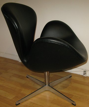 Arne Jacobsen (1902-1971), Svanen er betrukket med sort læder. "Svanen" svæver på en satinpoleret aluminiumstjernefod med returdrej, skallen formet af fiberglasforstærket kunststof med skumpolstring.