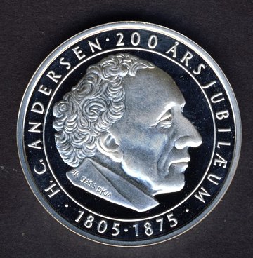H.C. Andersen "Hyrdinden og skorstensfejeren" medalje i sterling, præget i anledning af digterens 200 års jubilæum 2005. Vægt: 27,20 gr.