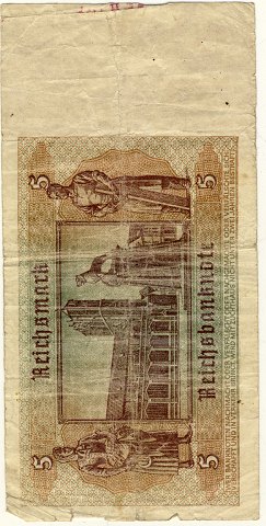 5 mark 1942, Rigsbankseddel trykt i Berlin.