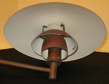 Poul Henningsen (1894-1967) PH 4,5/3 udendørs væglampe med skærme af oxideret kobber, brugstegn, fremstillet hos Louis Poulsen. Diam 45 cm.