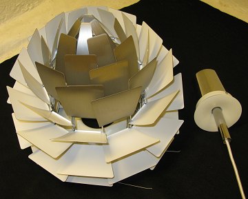 Poul Henningsen (1894-1967), "Koglen", udført i laserskåret rustfrit stål der er børstet og lakeret, lille model, produceret hos Louis Poulsen. Fremstår i rigtig pæn stand. Ophæng mangler.