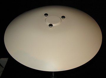 Poul Henningsen (1894-1967), ph, bordlampe 4/3 med hvide metalskærme, forkromede metaldele, trekantet afbryder/fatningshus i sort kunststof. H. 48 cm. Diam. 46 cm