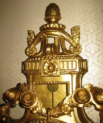 Svensk cartelur af udskåret og forgyldt træ. Mrk. Petter Lundmark i Stockholm, hvid emalje skive, L. 100 cm, B. 54 cm, d. 10 cm