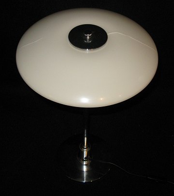 PH Poul Henningsen (1894-1967) 3/2 bordlampe i højglansforkromet messing, skærme af mundblæst hvidt opal glas, monteret med 2,1 meter plastledning, H. 47,2 cm. Diam. 30 cm