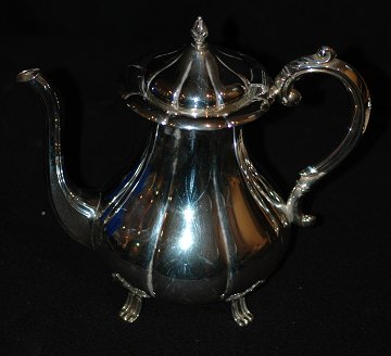 Kaffesæt i sølv .830, 4 dele; kande, sukkerskål og flødekande, bakke. Vægt ialt 1298g. Kaffekande H.24cm.