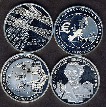 Tyskland, 4 stk. 10 euro 2002 og 2003, sølv.