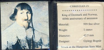 Chr. IV-jubilæumsmedalje i finsølv, præget i anledning af 400-året for Kongens kroningen i 1588.